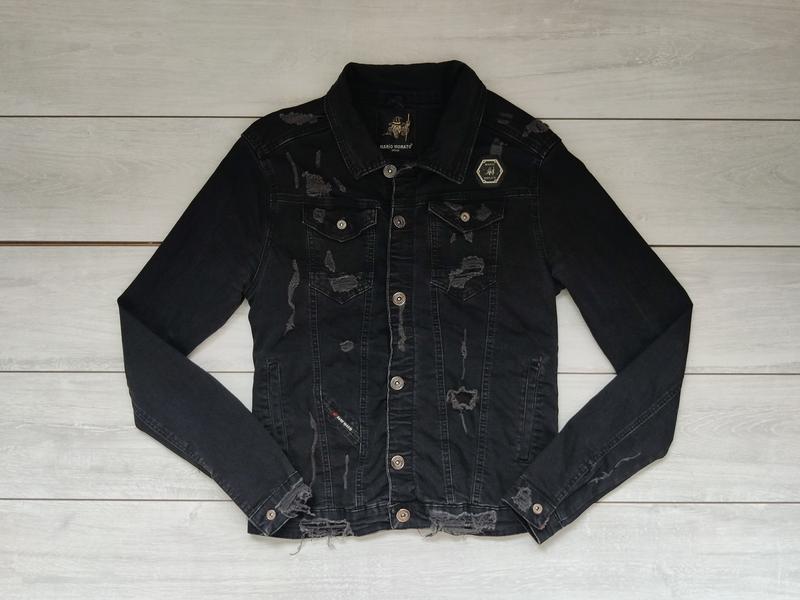 Мужской джинсовый рваный пиджак куртка крутого бренда mario morato