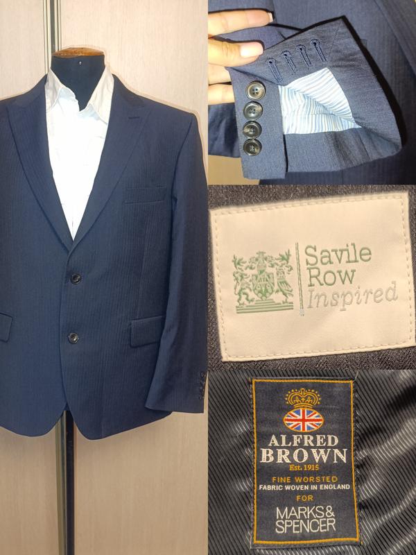 пиджак премиального качества от Savile Row. Savile Row - английское ателье с 1938 года отшивающие мужскую одежду как на заказ, так и готовые экземпляры. данный пиджак выполнен из 100%шерсти английского производителя тканей Alfred Brown. пиджак в состоянии новой вещи никаких нюансов нет. классический крой с "правильными" лацканами. на манжетах по 4 пуговки. все пуговки расстегиваются, что характерно только для премиального пиджака, т.к. это специфический и отдельный вид операции при производстве. и более дешёвый сегмент пиджаков пренебрегают этой операцией! на лацкане петлица. есть нагрудный не расшитый карман боковые карманы с наружными клапанами. правый карман не расшит. сзади два разреза подкладка идеальная! длина 72см длина рукава 62см плечи 47см ПОГ 56см ПОТ 52см