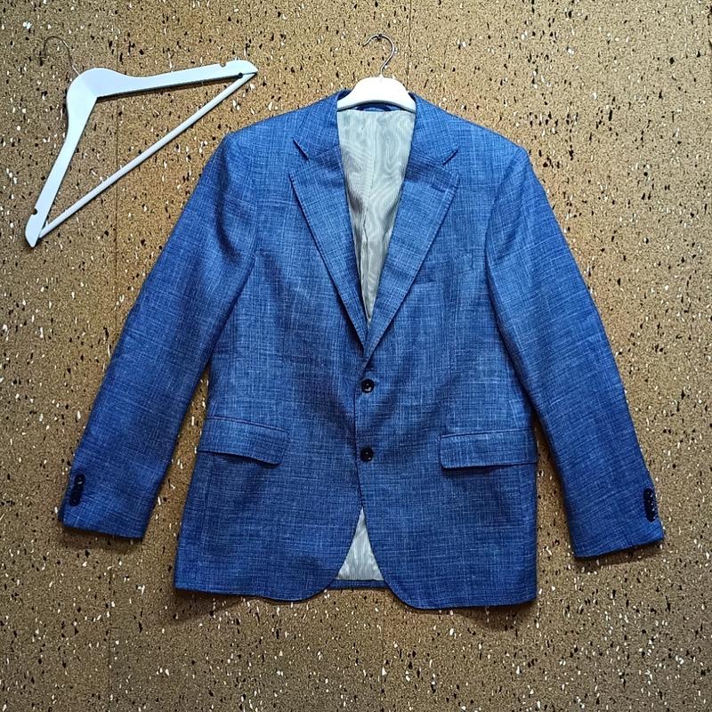 Элегантный голубой пиджак Loro Piana Материал: Изготовленный из высококачественной ткани, 71% шерсть, 16% шелк, 13% лен характерный для роскошных материалов Loro Piana. Цвет: Насыщенный голубой оттенок с текстурированной поверхностью. Фасон: Классический однобортный крой, обеспечивающий элегантный и современный вид. Детали: Две пуговицы, накладные карманы, подкладка светлого цвета. Идеально подходит для официального или полуофициального мероприятия, а также для повседневного элегантного стиля.. В очень красивом состоянии, оригинал
