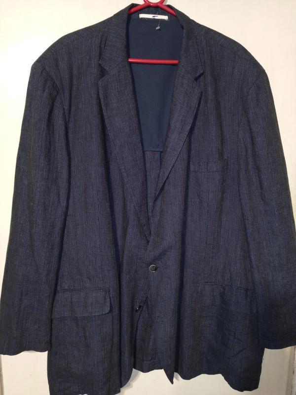 Льняной 100% синий пиджак-блейзер без подкладки ог 146см мега батал michael kaiser
