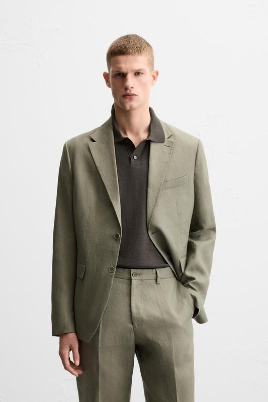 Лляний піджак стандартного крою з підкладкою, прямокутними лацканами та довгими рукавами. Ґудзики на манжетах, кишеня з обшивкою на грудях, кишені з клапаном унизу й кишеня всередині. Шліци ззаду. Застібається на ґудзики спереду Розмір по бірці 52 (підходить на L) Довжина по спині 76 см Ширина в плечах 49 см Ширина в грудях 58,5 см Довжина рукава від плеча 68 см (від коміра 83 см) Зовні 100% льон Підкладка 100% поліестер Світло-зелений колір Новий (має заводський брак, з внутрішньої частини рукава видніється полоска іншого кольору, при носінні не видно, дивіться останнє фото)