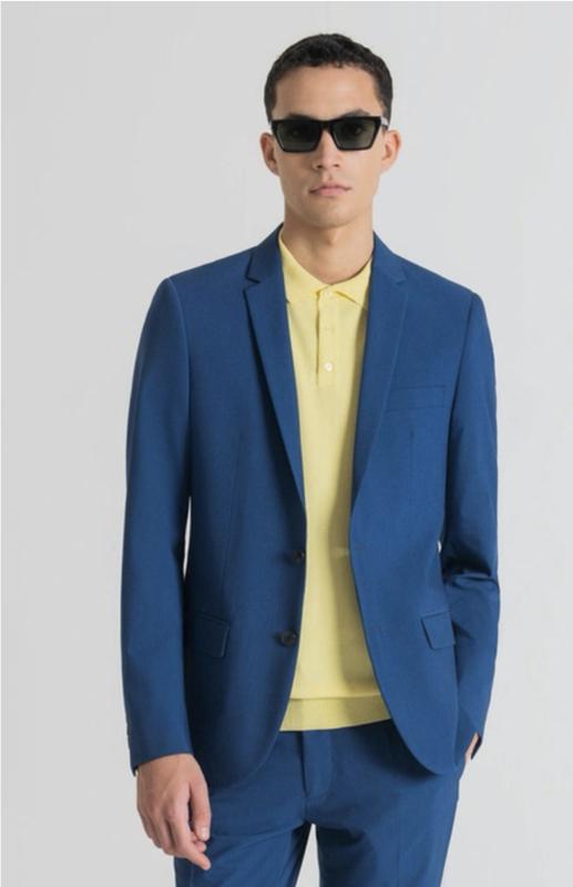 Блейзер синего цвета Express. 60% котон размер 42 R длина 75 пог 53 пот 49 рукав 65 плечи 48 Нюанс- на останньому фото зламан один гудзик.