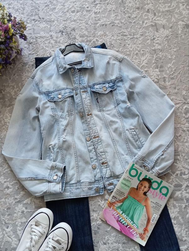 Мужской джинсовый пиджак, жакет terranova с потертостями xl свет голубой