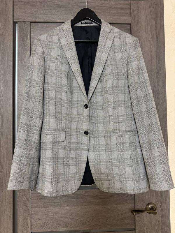 Двубортний довжина 77 см ,довжина рукава 67 см довжина плеч 46 см