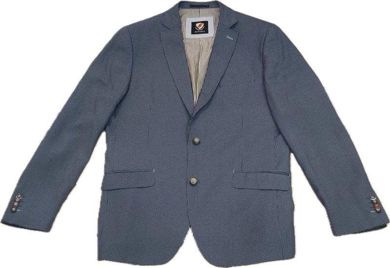 Пиджак голубого цвета. Европейский Бренд Suitable Легкий комфортный материал. Высокое качество. Состав: 52% полиэстр 48% вискоза Цвет: голубой в клетку Размер 52-54, на рост 176-180 см. Качество - люкс Стан - идеальный Плечи - 48 см. Груди (пахви) - 59 см. Талия - 56 см. Рукав от плеча – 65 см. Длина от воротника - 74 см. Низ 60 см.
