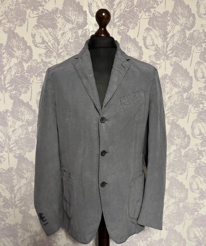 Пиджак итальянского люкс бренда Lardini ,цвет серый,размеры 52(маломерит на М),состав:52% лён ,48% шёлк ,производство Италия ,замеры (п/обьём 55, плечи 47, длина рукава по внешнему шву 67, по внутреннему 46,длина изделия 77).Состояние идеальное.