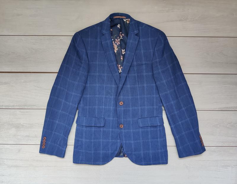 Качественный небольшой мужской льняной пиджак блейзер в клетку 38 r р