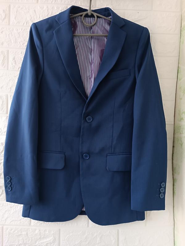 очень красивый мужской пиджак темно-синего цвета новый, длина 68, полуобхват груди 42, плечи 36, длина рукава 59, размер смотрите по замерам.