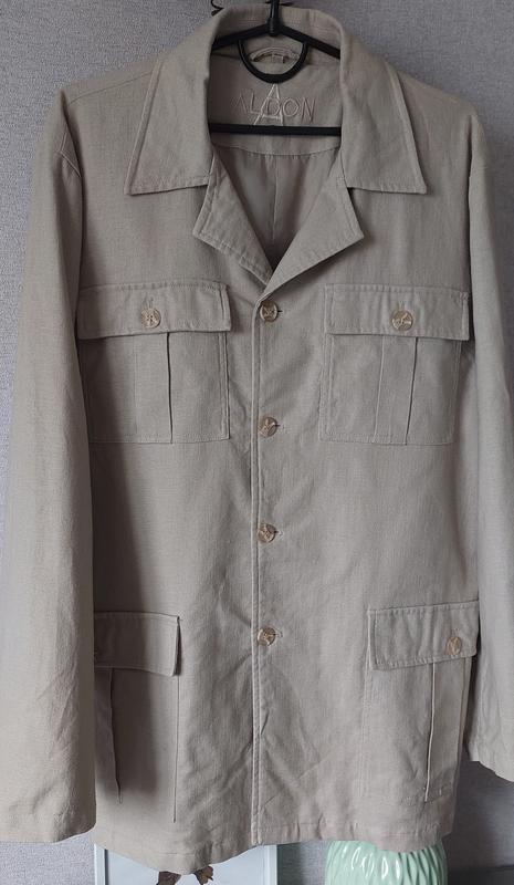 продам чоловічий піджак 4 накладні кишені розмір М Склад 50 льон 50 бавовна Стан ідеальний, без нюансів Заміри Довжина ПОГ Рукав від плеча до плеча