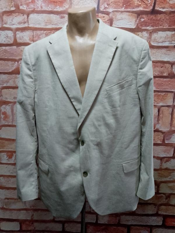 Пиджак летний хлопок/лен C&A Ткань хлопок/лен с добавлением эластана, подкладка частичная, крой свободный классический Замеры (см): плечи - 52, подмышки - 68, талия - 64, низ - 68, длина по спине (без воротника) - 79, рукав от плеча - 69 Состояние: отличное, следы пользования абсолютно незначительные Внимание: вещь может иметь помятости от хранения и запах секонд-хенда или сырости