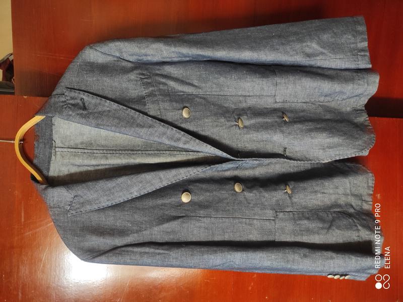 Пиджак двубортный мужской AT.***** Р-63 П-46 С-70 НОГ-52 Склад 53% льон, 47% бавовна Имеет сзади две шлицы Цвет, под джинс’’