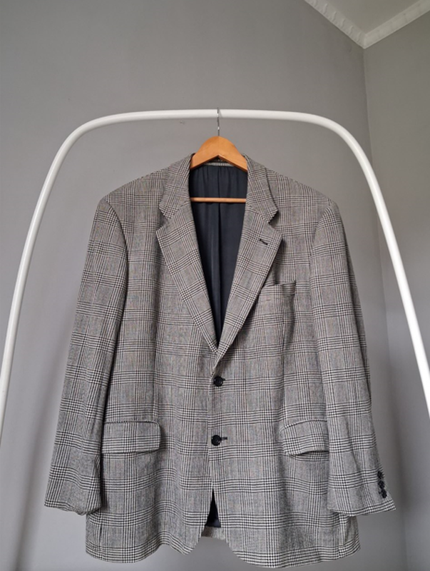 Мужской пиджак в клетку, на подкладке, с подплечниками Есть внутренние, внешние карманы с клапанами Размер - 56 Замеры: полуобхват груди - 61 см ширина плечей – 52 см длина рукава – 62 см длина по спинке – 77.8 см тканина – 97% вовна 3% еластан подкладка – 100% вискоза