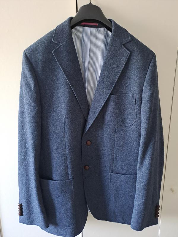 Продам клубный пиджак Gant из 100% шерсти премиум качества, приятного синего цвета, очень стильный, сзади две шлицы, без бумажной бирки, указанный размер 50, подойдет на M-L, без дефектов длина 76 плечи 47 полуобхват груди 58 полу охват талии 53,5 ширина по низу 57,5 длина рукава 67