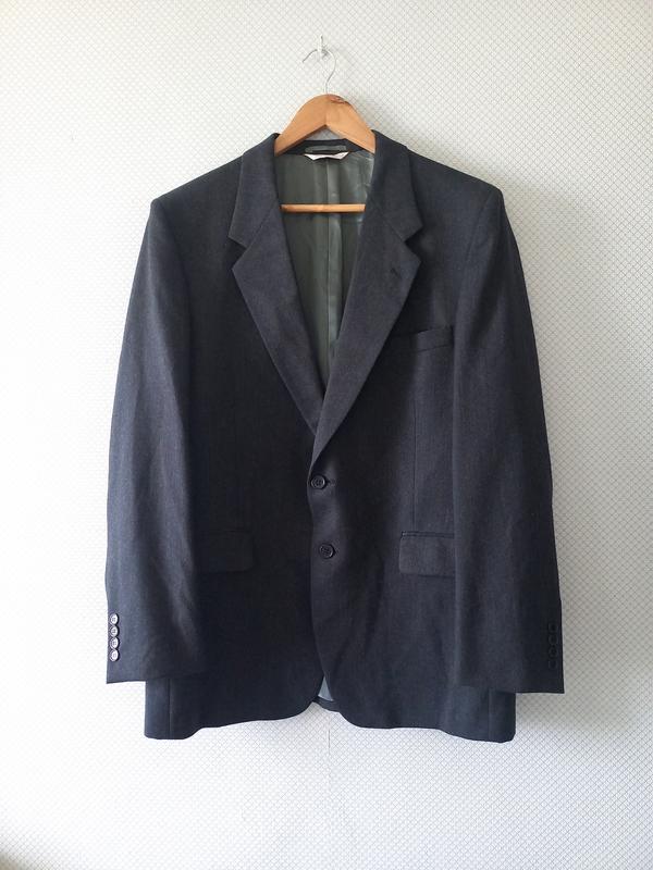 Мужской классический пиджак серого цвета в полоску. Качественная ткань, ручной пошив. Подклада красивая вискозная, бирка со складом ткани отсутствует. Но тест на поджиг показал, что ткань шерстяная. Жакет отлично держит форму. Стан идеален. Замеры: под руками - 54см,плечи - 46см, рукав - 65см, длина по спинке - 77см.