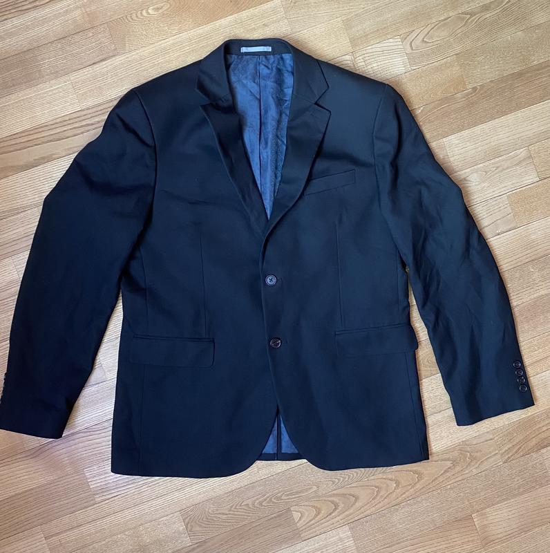 Стильний піджак чорного кольору, на синьому підкладі.
