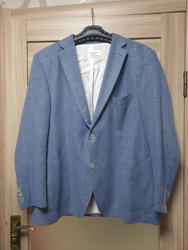 Пиджак в идеальном состоянии. Эффектов нет следов ношения. Качество ткани, и качество пошива отличное. Размер XL XXL ориентируйтесь по замерам. Цвет серо голубый меланж. Будущий владелец будет доволен. ПОГ 63см Длина 79см Плечи 50см Длина рукава 65см.