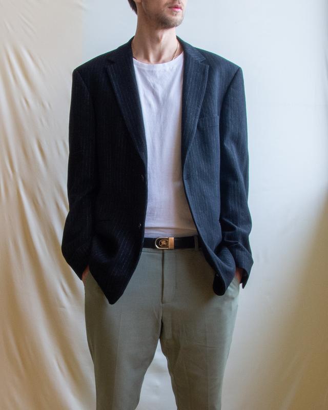 Made in Slovenia - Состояние: Идеальное - 96% virgin wool, 3% elastan, 1% polyester - Черный в тонкую, белую полоску - Размер 54 (Надет на: 183 см. 75кг)