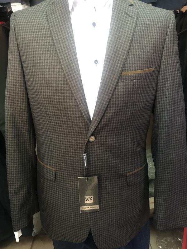 Приталений чоловічий піджак темно-коричневий в клітинку фірми West Fashion,розмір 50/188,,ПОГ -52,ПОТ -50,довжина-79см,ширина плеч -46,довжина рукава 66см
