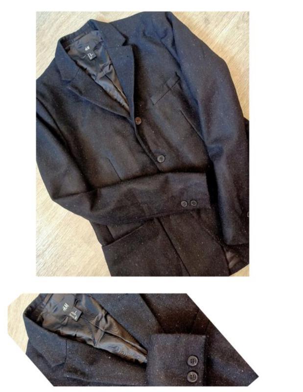 Пиджак H&M на четырех пуговицах, хороший состав, 54%шерсть. Размер XXL ,рост 180,все замеры на последнем фото.