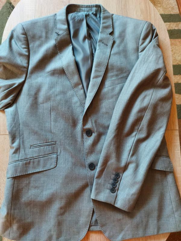 Оригинальный мужской пиджак известного британского бренда Butler and Webb. Состояние идеальное. Цвет серый. Материал 82% полиэстера и 18% вискозы. Подкладка: полиэстер. Страна производства Испания. Размер EU 52 . Замеры: Полуобхват груди - 58 см, талии - 52 см, низа - 58 см. Длина рукава по внешнему краю - 65 см , по внутреннему - 43 см. Ширина плеч - 44 см, длина по спинке - 74 см. Сзади разрез (еще не расшит). Спереди 4 кармана (еще не расшиты). Спереди 2 пуговицы, на рукавах по 4 пуговицы.