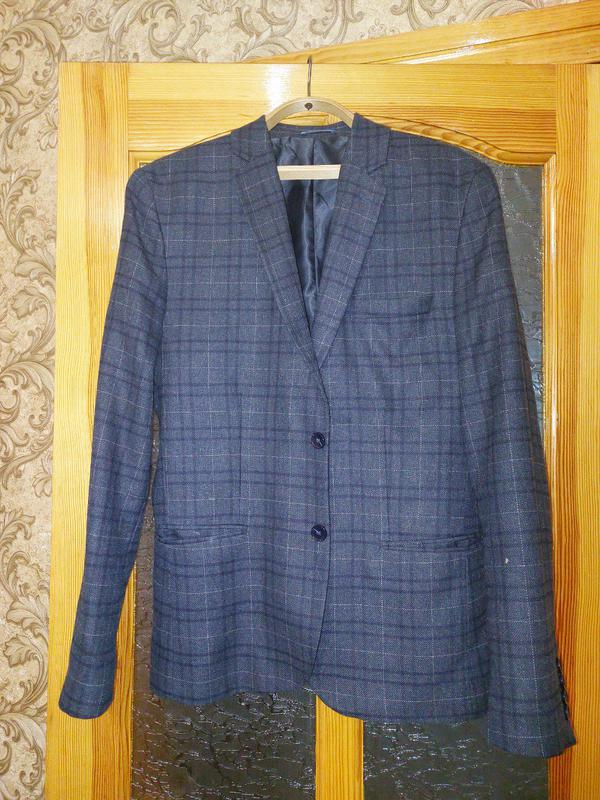піджак у клітинку,кармани,на спині розріз,на рукавах гудзкі
