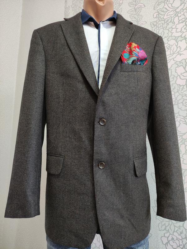 Стильний чоловічий піджак відомого бренду. Колір темний шоколад. Тканина мягка, шовковиста. Ідеальні лекала. Склад на фото. Стан новий, без етикетки. Розмір приблизно 52-54 Заміри: -----довжина 77 -----рукав від плеча 66 -----рукав від коміра 82 -----плечі 50 -----ПОГ 57 -----ПОТ 55 Можлива погрішність в замірах -+1см