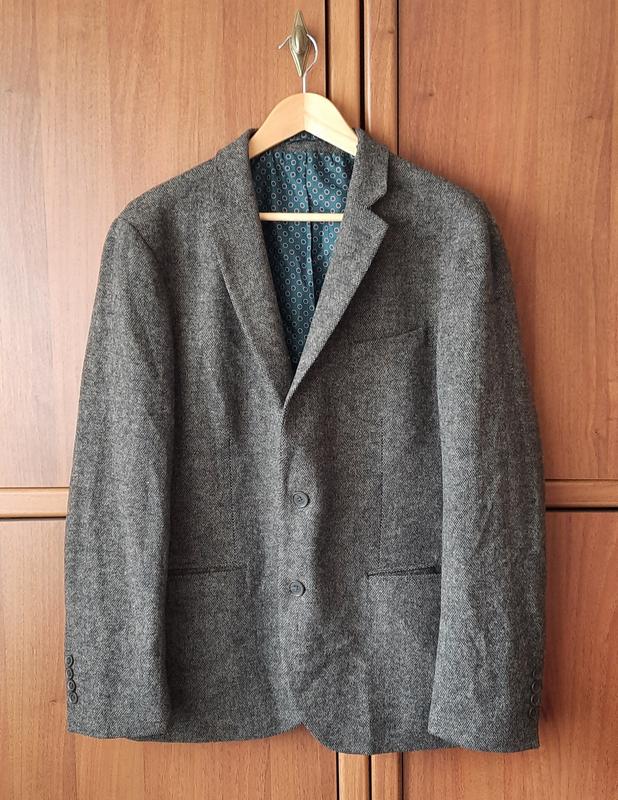 Коричневий чоловічий піджак TU. 48% шерсть, 42% поліестер, 4% акрил, 3% віскоза, 3% поліамід. Розмір M. Ширина в зоні плечей - 48 см, ширина в зоні грудей - 53 см, довжина - 72 см, довжина рукава - 64 см.