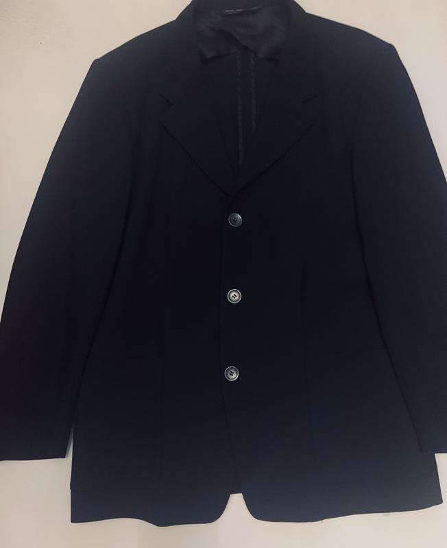 Пиджак производства Италия. Флисовая шерсть. Размер-USA - 36, Italy-52, Ukraine-46р. Классический однобортный пиджак на три пуговицы с лазерной обрезкой краев. Воротник закрыт небольшой пуговицей на шее. Два нижних передних карманных карманных кармана. Наполовину на подкладке внутри с перфорированной эластичной тканью и двумя встроенными карманами на пуговицах. Рукава на эластичной сатиновой подкладке. Длина по спине 78 Длина рукава 64 Плечи 47 Груди 54 Бедра 53