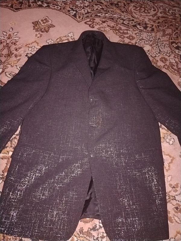 Пиджак черный с блеском.состояние отличное.размер 50 -52.плечи 49.пог56.длина 82.рукав 64.