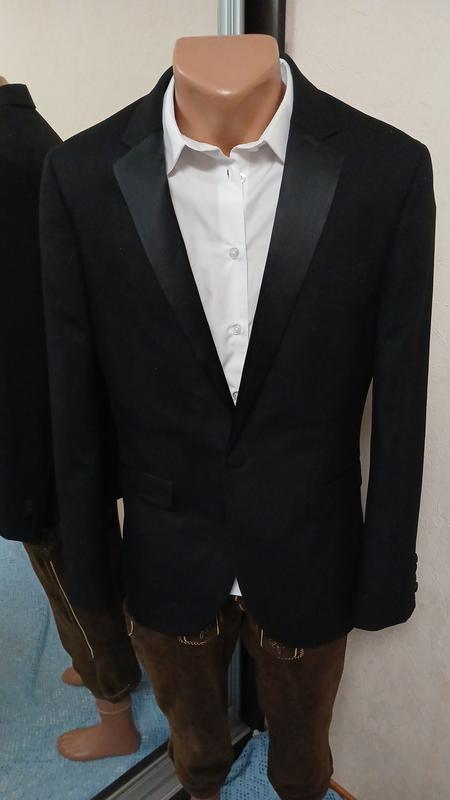 Смокинг мужской, классический, с атласным воротником, застежка на одну пуговицу.Смокинг в состоянии новой вещи, с зашитыми карманами. Замеры изделия: пог 51 см постегон: 47 см, длина изделия: 75 см, длина рукава: 64 см.
