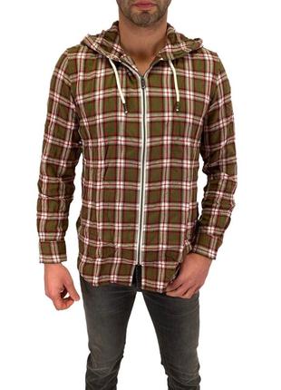 Рубашка чоловіча DIESEL колір хакі-білий розмір XS .арт 00SQZ10AAMI Рубашка чоловіча DIESEL Артикул: 00SQZ10AAMI Сорочка в клітинку на блискавці з капюшоном Колір: Синьо-білий Склад: 99% бавовна, 1% еластан