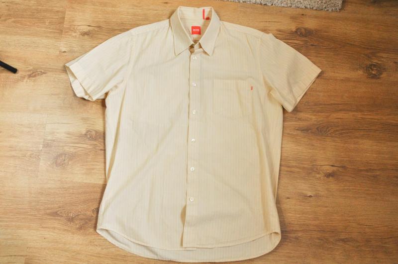 Рубашка HUGO BOSS. (М) состояние идеальное, размер М. 100% бавовна поп-42, длина - 76, пог - 55, рукав - 22 Цвет нежный лимонный в лавандовую полоску