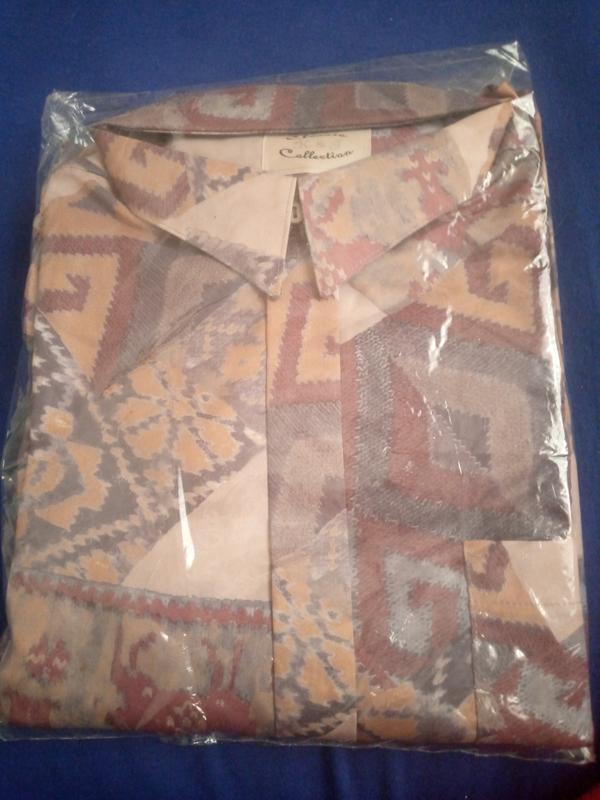 Фантазійна сорочка в стилі печворк з довгим рукавом. Якщо Ви любите вирізнятися і цікаво вдягатися - це сорочка саме для Вас. Імітація в'язаного трикотажу зроблена в модному стилі Печворк. Не маркая,можно прати в машинці,сохне меньше ніж за годину! Заміри : Довжина - 81 см Плечі - 57 см Рукава - 65 см Ширина під рукавами - 71 см Ширина по низу - 66 см