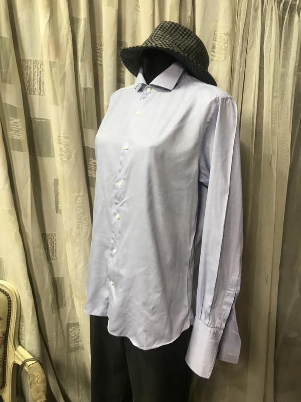 Стильная качественная рубашка от Massimo Dutti. Манжеты под запонки. Красивый голубой цвет. Пуговицы брендированные. Размер-41. Замеры по запросу