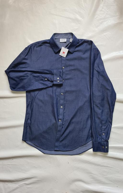 Мужская рубашка под джинс Calvin Klein, линейки X - Extreme slim fit. Размер- 34-35,воротник -15. Это M,может быть и на S, смотрите по замерам. Состояние - новая, но есть отсутствие под воротником(последнее фото), при ношении незаметно. Рубашка легко гладится. Отложной воротник со стойкой, приталенная модель с контурными вытачками на спине.Состав: Хлопок- 100%. Замеры:Плечи-48 см,грудь-54см; длина-62,5см; рукав-75см. Доставка :Укрпошта,Нова пошта. Оплата: на карточку Приват банка, Монобанк или наложенным платежем с задатком, шкаф оплата. Возвращение-нет.