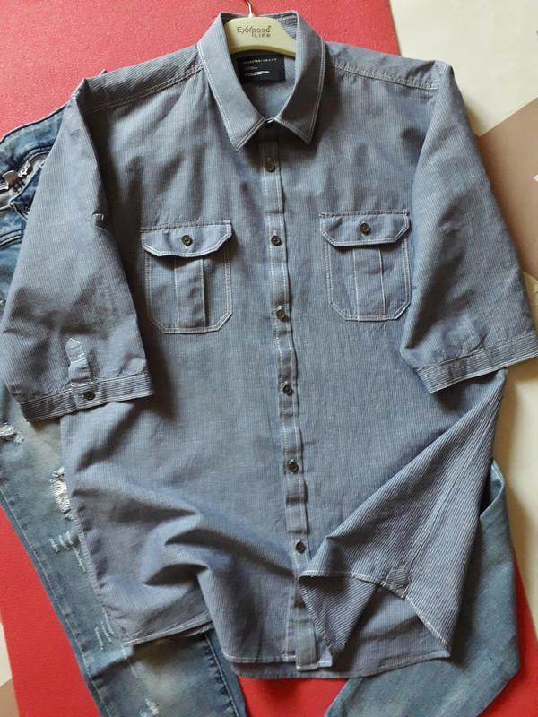 Стильна сорочка відомого бренду у смужку.Колір дуже гарний, солідний, блакитно-сірий (камера не передає дійсний колір).Тканина дуже приємна до тіла,льон 90% і катон. По центру сорочки планка на гудзиках. Дві функціональні кішені,рукав на гудзику,можно подвернути. Бокова частина сорочки трохи закруглена.Плечі,рукава,кішені,бокова частина відстрочена подвійною строчкою. Якісне пошиття. Комфорт і стиль. Плечі 49 Пог 55,5 Рукав 35 Довжина 76/79. Обміну та повернення немає. Нова,укрпошта.