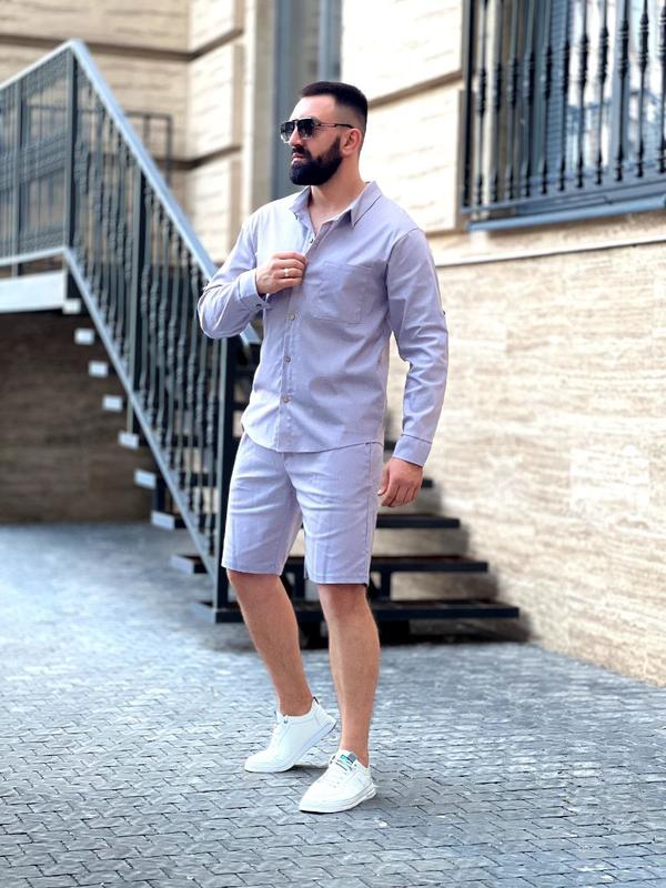 Костюм льняной рубашка + шорты ▪️Тканина: стрейч льон ▪️Размеры: м, л, хл, ххл