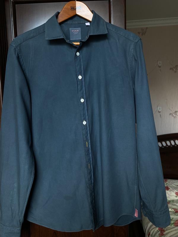 Мужская рубашка размер С-М, на спине дефект, выцветающий цвет. Это дорогая рубашка, стоила 100 фунтов, можете убрать и покрасить цвет в хим чистке.