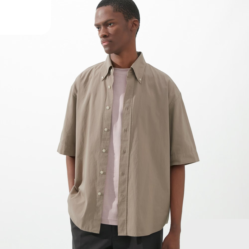 Состав: 100% хлопок Uniqlo U Oversized Short Sleeve Shirt 100% хлопковая ткань поплин с высокой прочностью рубашка с воротником на пуговицах оверсайз крой закругленные края