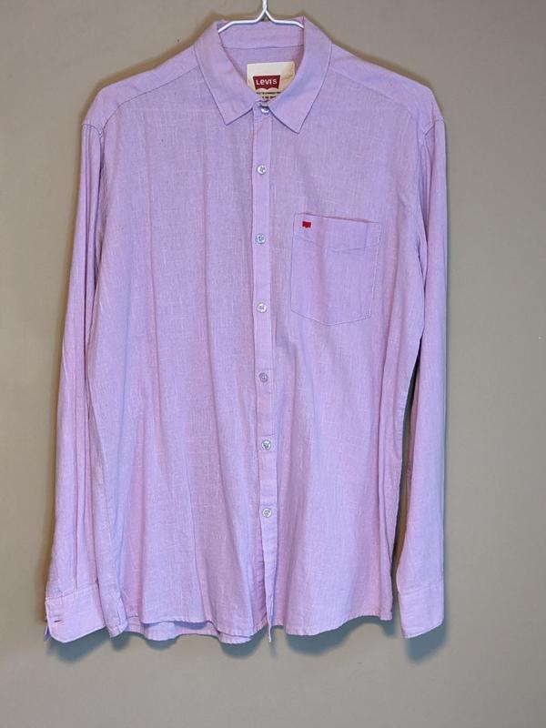 Сорочка рожевого кольору Levi's. Сделана из хлопка. Застегивается на пуговицы. Размер: M - L.