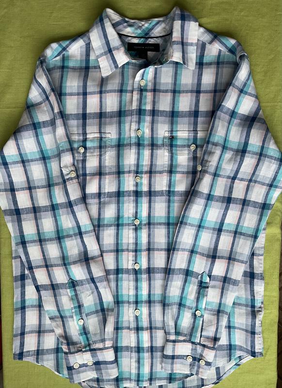tommy hilfiger сорочка льон зі 100% льону в ідеальному стані. Розмір вказано S/P Перевіряйте заміри: Ширина спинки 44 см Комір 40 см ПОГ 55 см ПОТ 53 см ПОниз 54 см Довжина по боковому шву 42 см Довжина по спинці 79 см Довжина по переду 76 см Довжина рукава від коміра 84 см Стан: нова, без бірки.