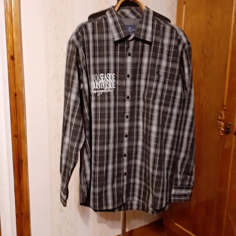 Брендовая рубашка в оригинале с нагрудной вышивкой надписи натуральная ткань катон хлопок с кармашком вор.47-48 Дл.79 Пл.55 Р 63 Б по 26 Ог 142 Об 146👌