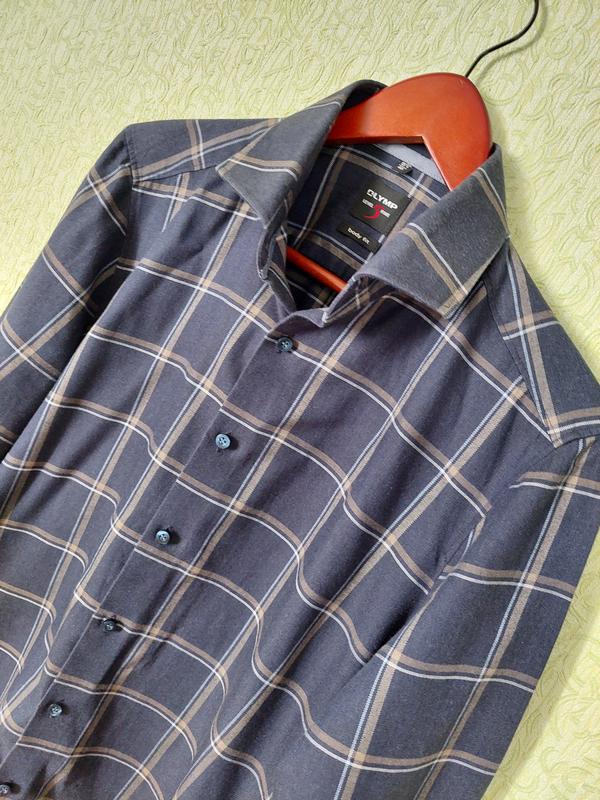 базова брендова сорочка димчато синього кольору в клітку в стилі кежуал із якісної фланелевої тканини 100% котон , модель вільного крою, застібається на гудзики, закруглені краї низу, довгий рукав з защипами коло манжетів, лінія плечей 43, груди ПО 55, низ 54, довжина 78, рукав від шва 67,вказаний розмір 40, підійде на С
