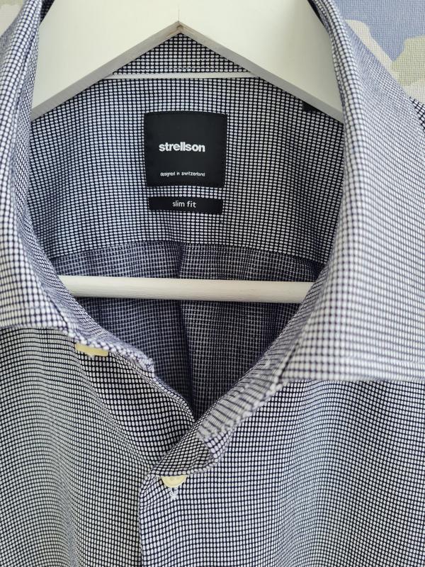 Мужская рубашка Strellson, воротничок 43 размер XL, ткань рельефная в мелкую клетку. Стан идеален. Замеры: длина-80см, рукав-65см, плечи-48см, пог- 58см, пот-53см.
