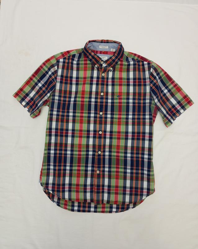 Подписывайтесь на мою страницу. Рубашка с коротким рукавом. Вьетнам. Котон. Размер не указан, смотрите замеры. Цвет разноцветный, синий зеленый, красный. Хорошее состояние. По плечах 44 ПОГ 54 Прямая Рукав 26 Длина 69/72