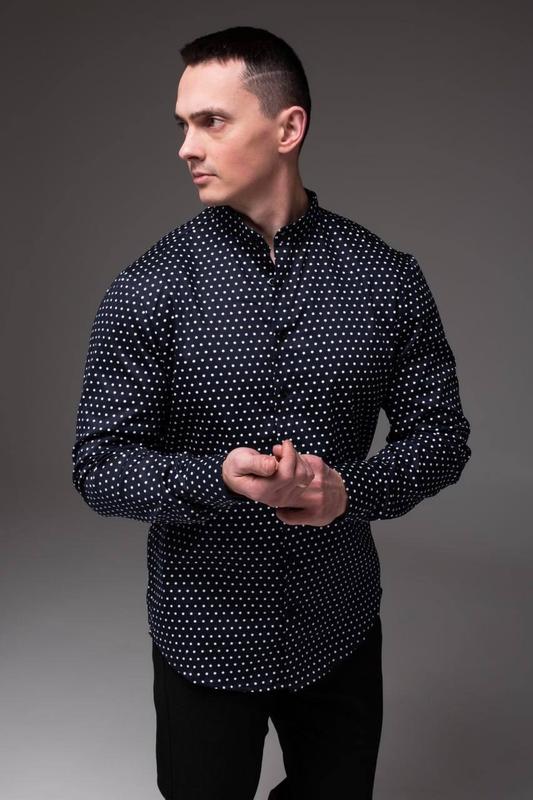 🔶 Артикул: 2239 👔 Темно-синя у горошок чоловіча сорочка casual комірець - стійка 💵 ціна 1000грн 📐 Розміри: S,M,L,XL 👍 Матеріал: бавовна 100%, 🧷 Виробник: Україна 🇺🇦