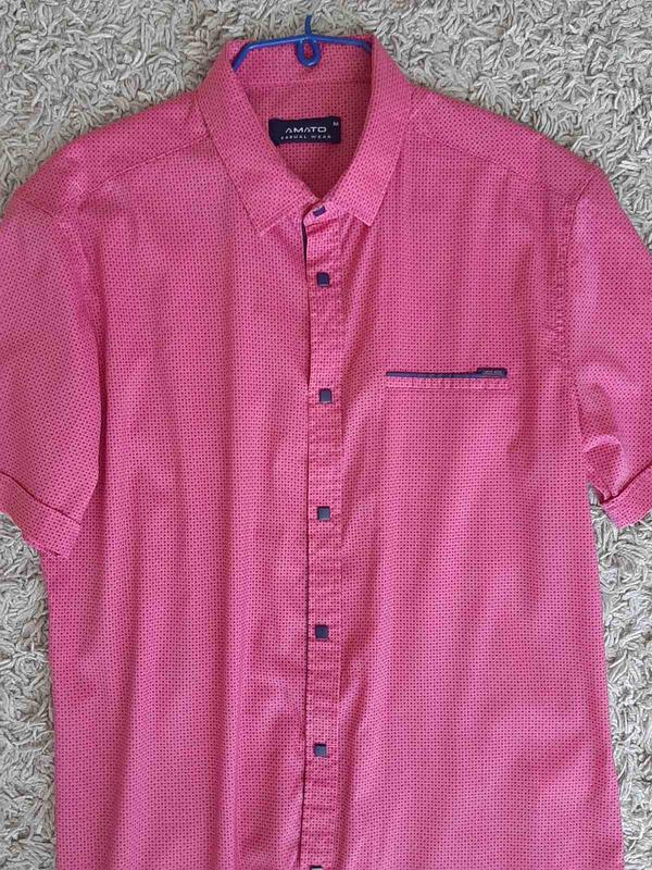Рубашка производство Турция в идеальном состоянии. Надевал сын один на экзамены. Красивый цвет, застегивается на контрасные кнопки, легкая. Замеры; рукав 22, пог. 50, длина по спинке 71, (Внимайте внимание, что низ идет по полукругу), плечи 44