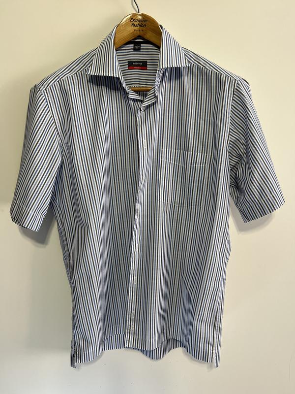 Мужская рубашка-рубашка Eterna modern fit Размер - 40, 15 3/4` Длина - 73 см Ширина плечей - 46 см. Длина рукава - 27 см Шея (от пуговицы до середины шлевки) - 39 см. Материал: 100% коттон хлопок Состояние: отличное, состояние ткани новое ОРИГІНАЛ Етерна Производитель Германия