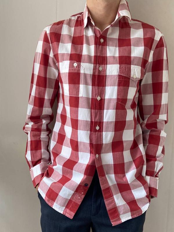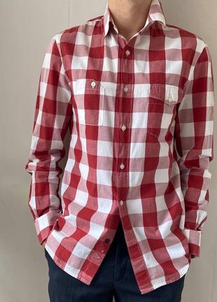 Мужская рубашка от бренда French Connection. Цвет в клетку. Размер S,M. Воротник отложной. Застежка спереди на пуговицы. Состав:100%хлопок.