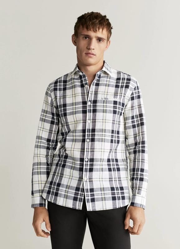 Рубашка regular fit в клетку хлопок и лен mango, чоловіча сорочка в клітинку.
